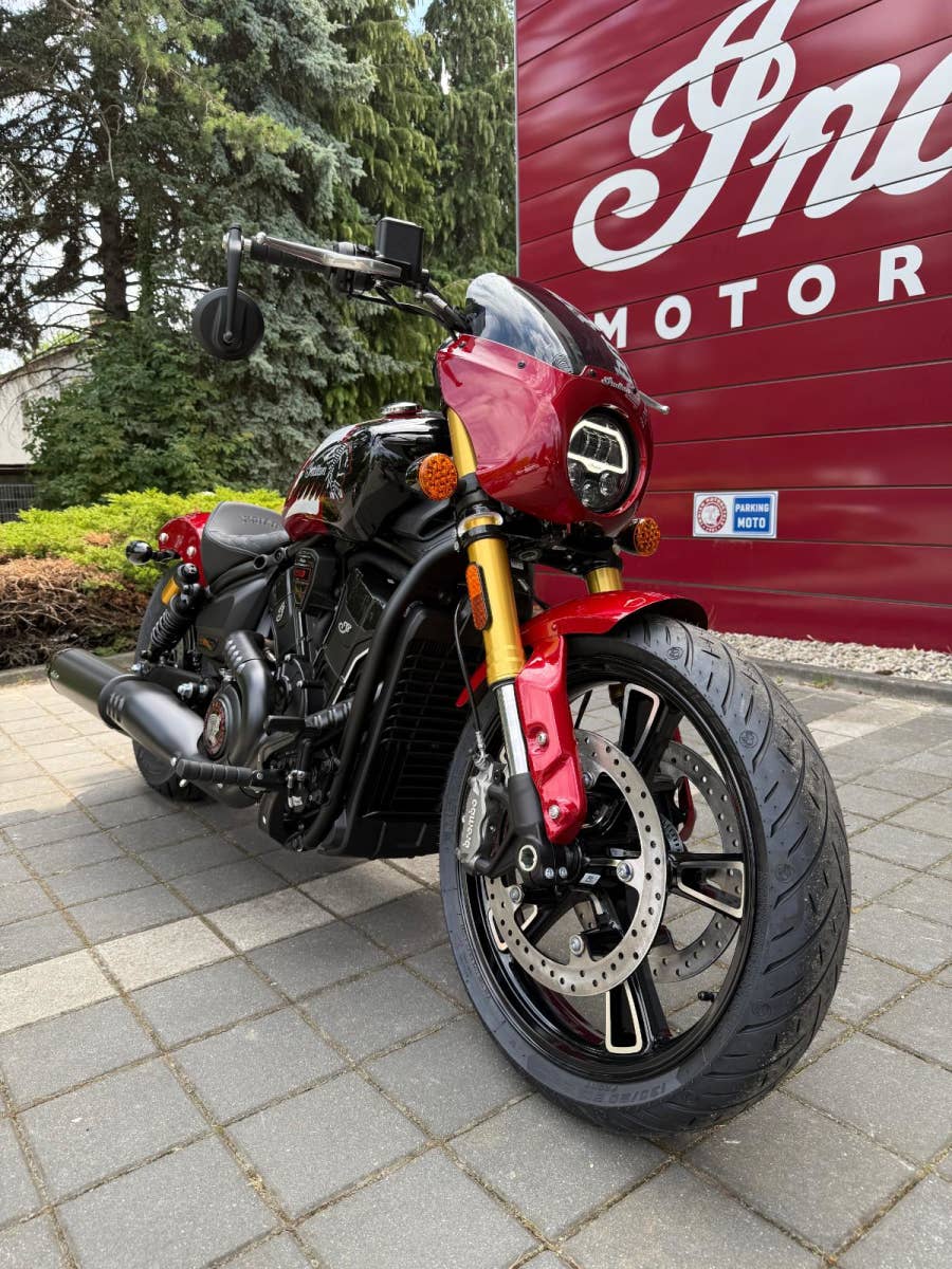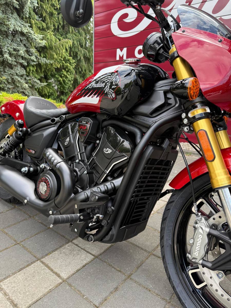 Indian 101 Scout v barvě Sunset Red Metallic, výjimečná kombinace výkonu a stylu! Díky výkonu 111 koní, nízkému těžišti (výška sedla 680 mm) a váze jen 249 kg nabízí 101 Scout vynikající ovladatelnost a handling. Motocykl je navíc vybaven kontrolou trakce, nastavitelnými zadními tlumiči Piggyback, bezklíčovým startováním a Brembo brzdami. 3 palivové mapy a moderní funkce systému Ride Command jen podtrhují technickou vyspělost tohoto stroje. To celé je zabaleno do sportovně-agresivního designu s nádechem retra.