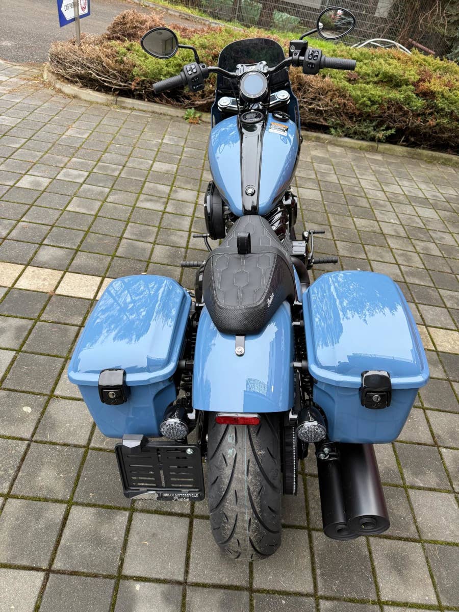 Vzduchem chlazený Thunderstroke 116 s velkým kroutícím momentem a třemi jízdními režimy, praktické, uzamykatelné skořepinové kufry, zadní nastavitelné tlumiče Fox® s externí nádobkou a obrácená přední vidlice KYB, dvojité kotoučové brzdy Brembo.